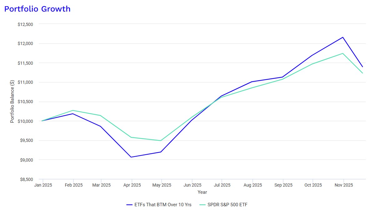 Well, here's a portfolio of ETFs that have beaten the market for many years. If we equally-weighted all of them, here's 2025's performance thus far:
