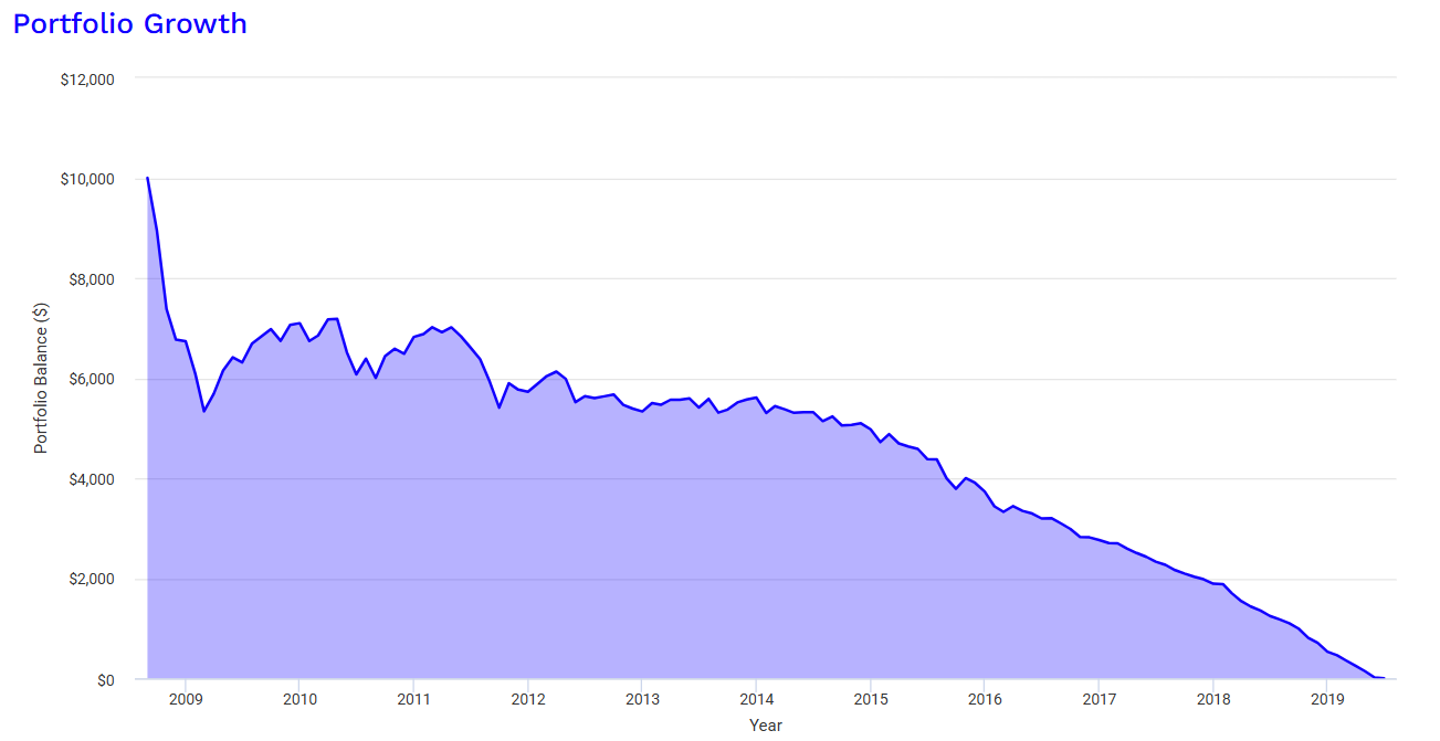 The facts also show that selling shares to fund our financial future is a potential ticking time bomb. If we get the wrong market environment or we sell too many shares, we're toast.