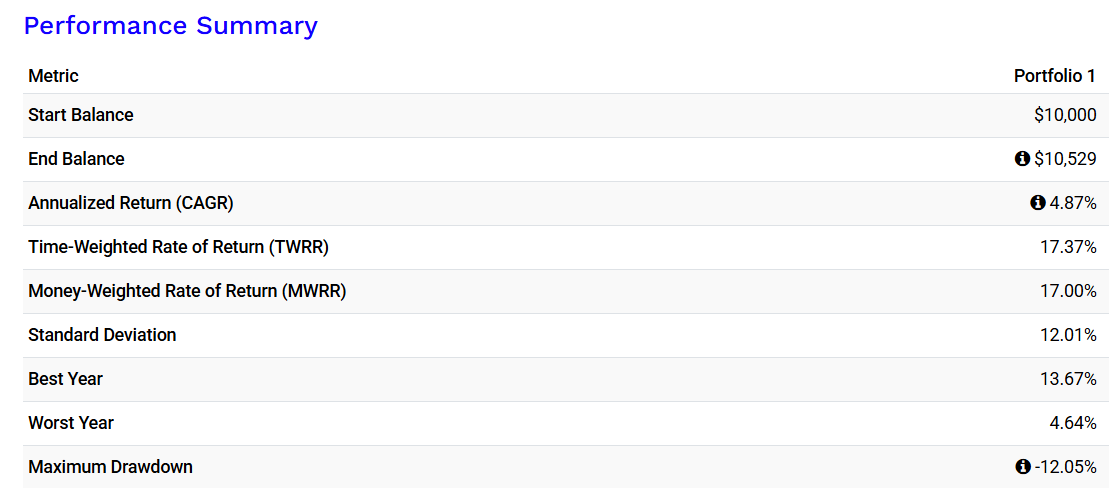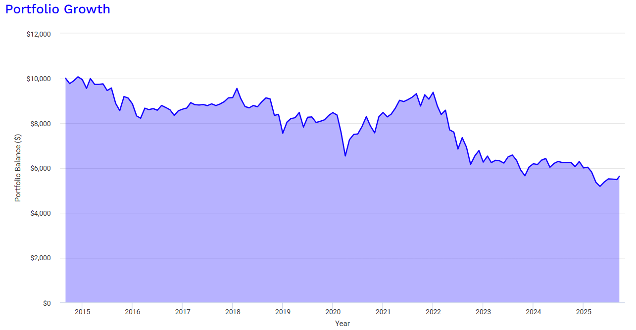 Oh no. We've gotten our $100 payment each month but now our account is in a death spiral. Our $10k is down to under $6k.