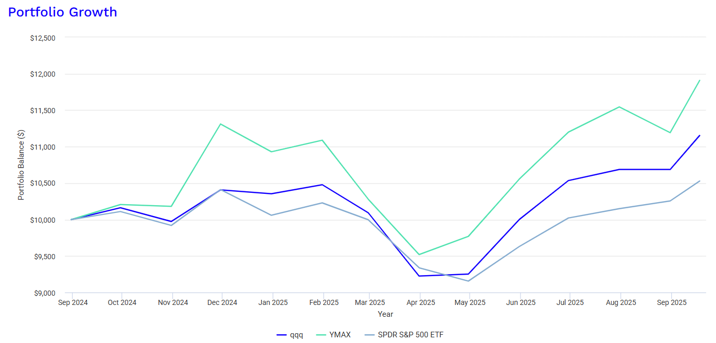 Here's SCHG and QQQ and SPY since September 2024. Both SCHG and QQQ have typically beaten SPY over time: