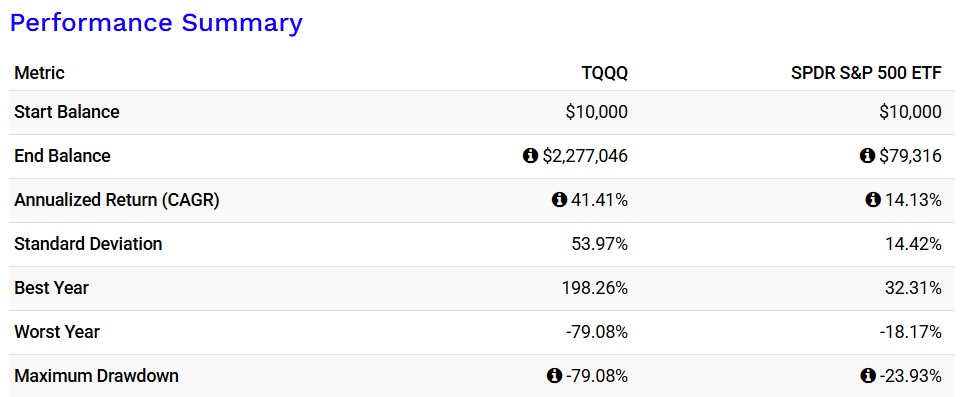 Furthermore, here is the Report and Curve on TQQQ since 2010 when compared to SPY: