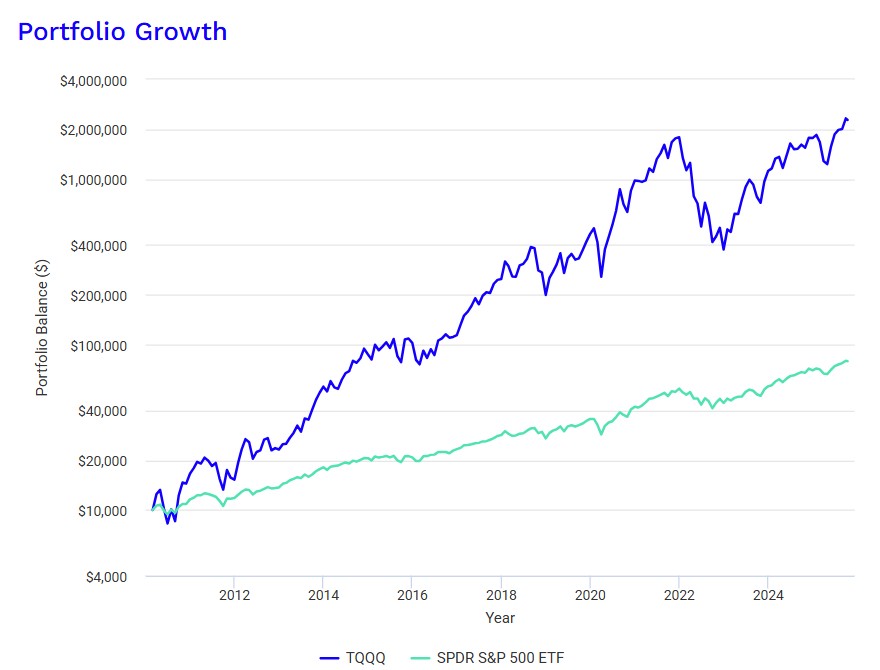 At some point between 2010 and 2025, a buy-and-hold TQQQ investor would have seen his/her money drop 79% from its peak. What does that mean?